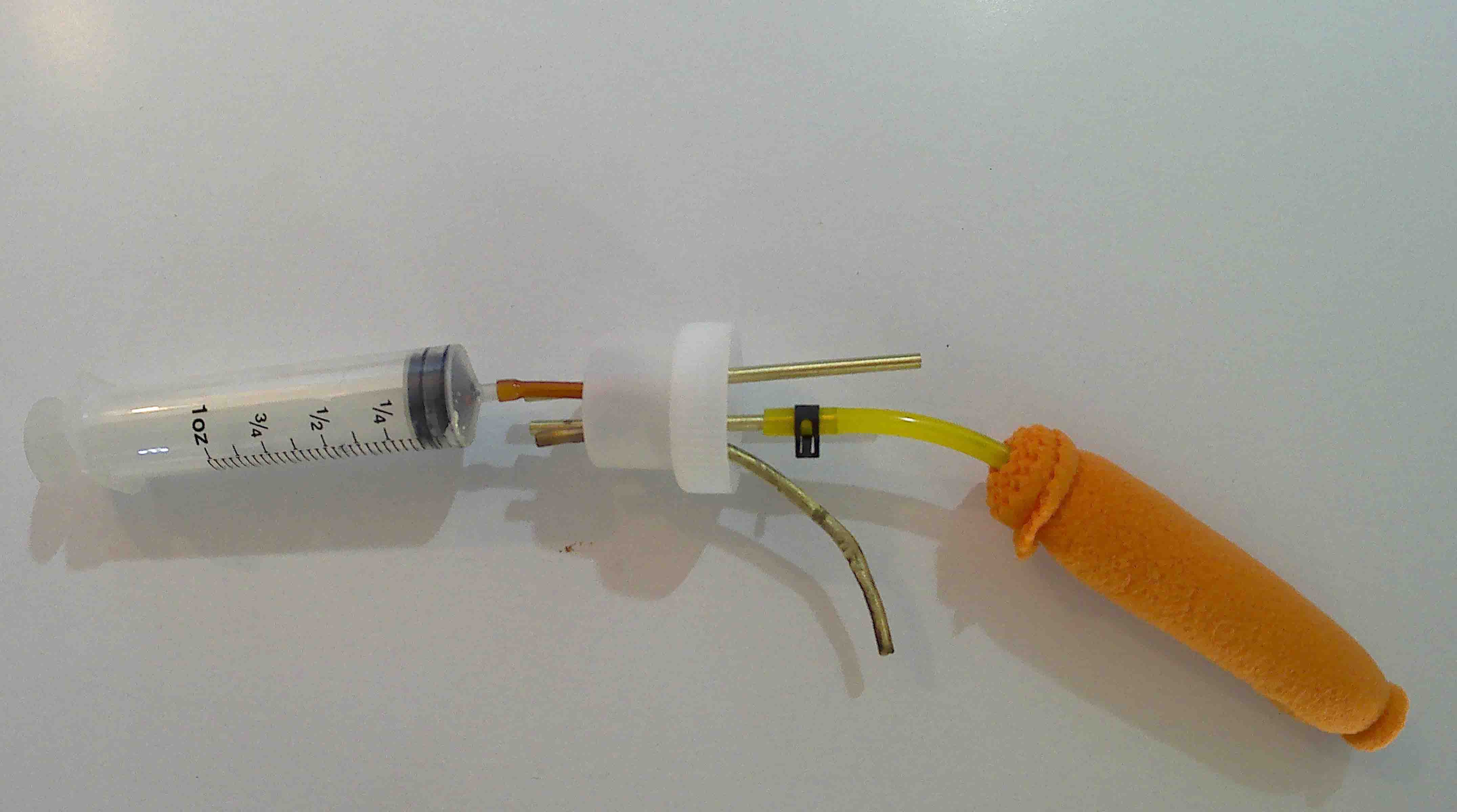 Le plongeur se compose d´un tube laiton de 5 mm de diamètre par 12 cm de long, percé de 16 trous de 3 mm. Pour les plus grosses turbines, un tube plus long, avec plus de trous et quelques tours de plus de chiffon devrait faire l´affaire. Mais