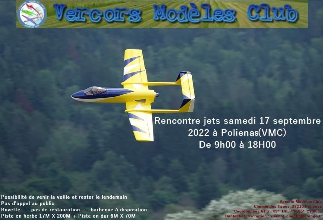 Pour info,le vercors model club organise une journée jet a polienas le samedi 17 septembre,possibilité de voler la veille ainsi que le dimanche...