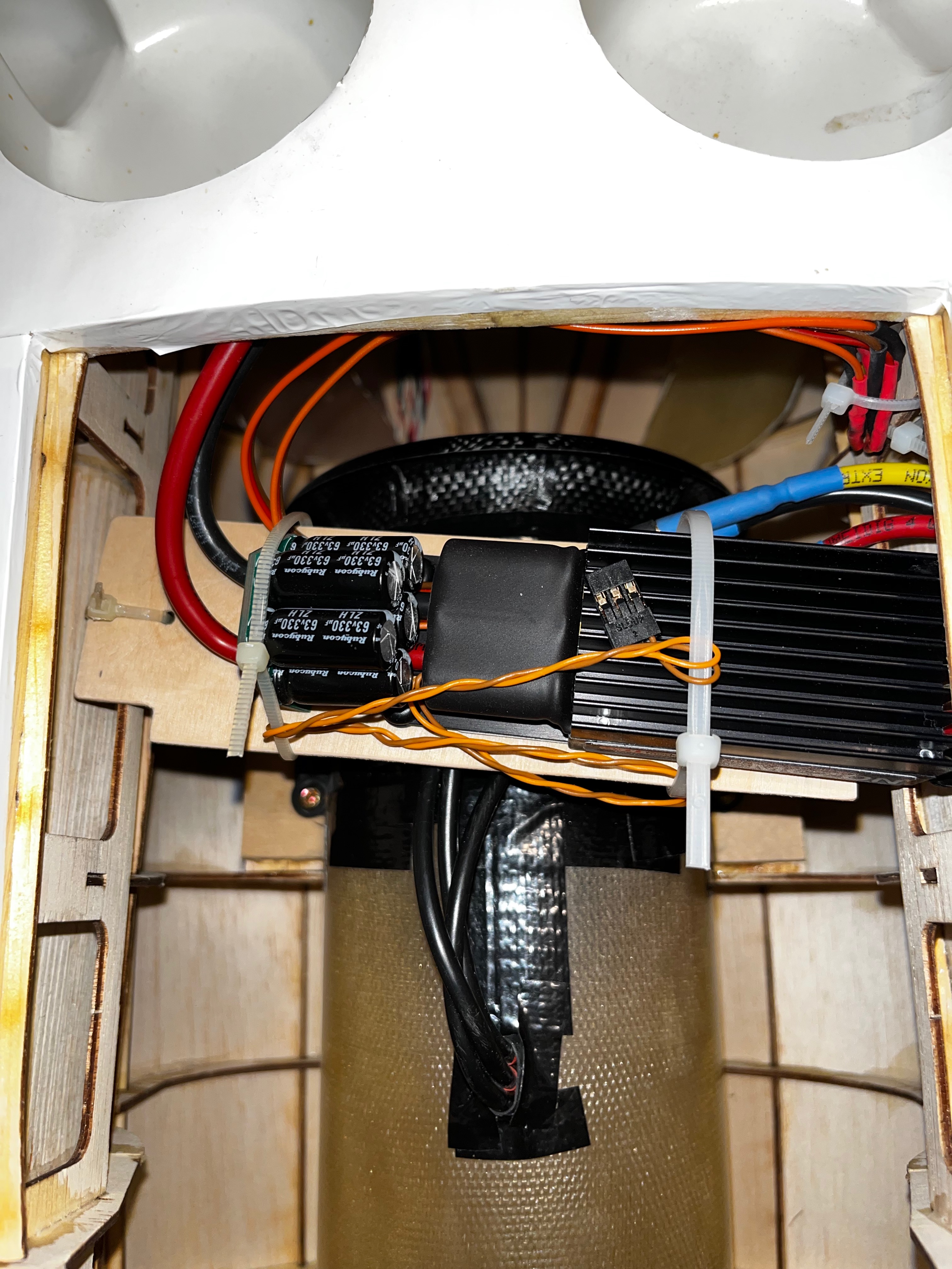 -5 Servos futaba ailerons,profondeur, roulette AV. 3 servos Savox volets, direction.